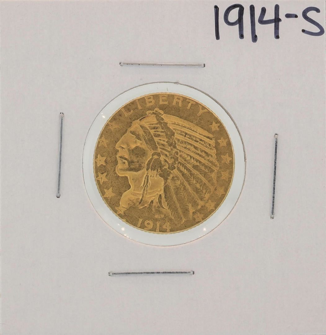 One 1914-S $5 Indian Head Half Eagle Gold Coin.