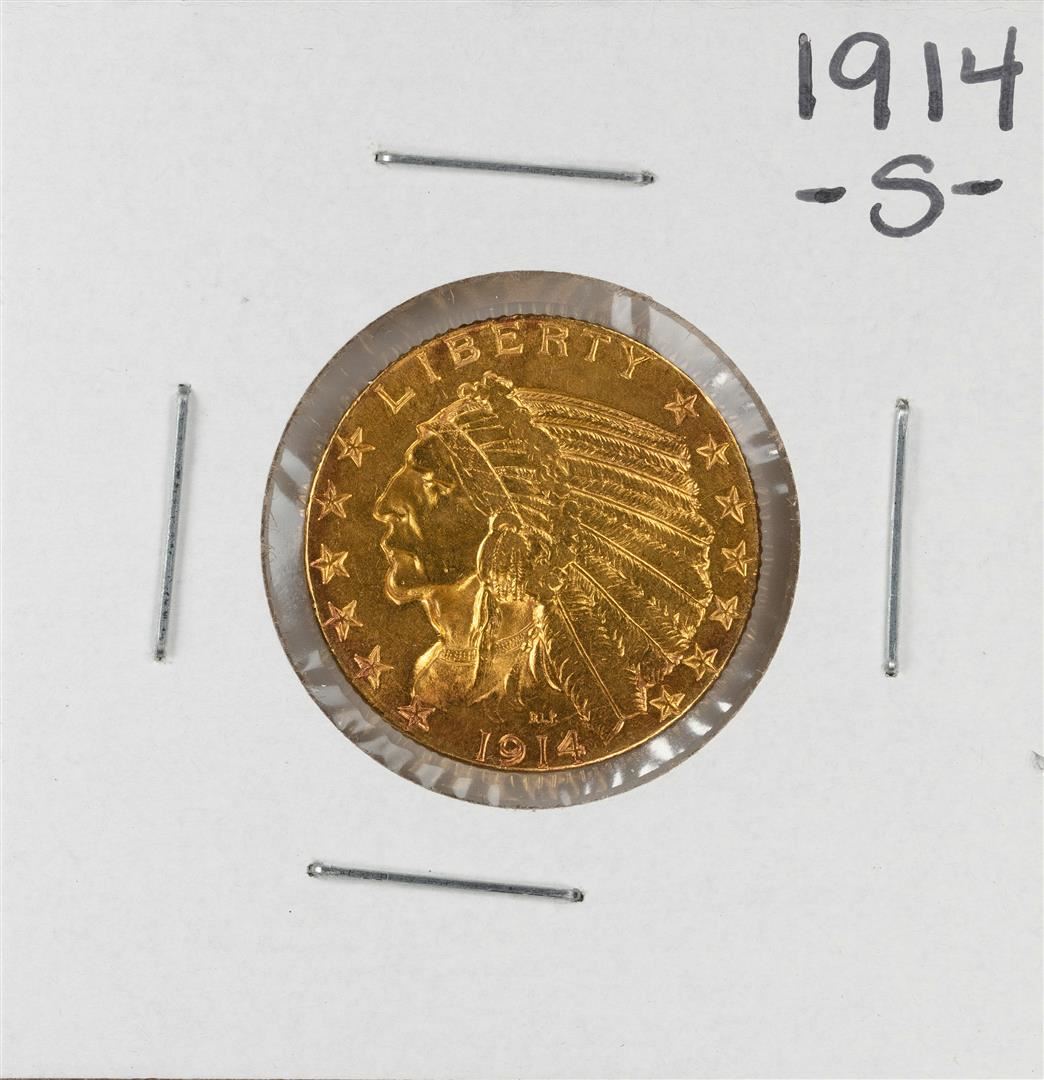 One 1914-S $5 Indian Head Half Eagle Gold Coin.