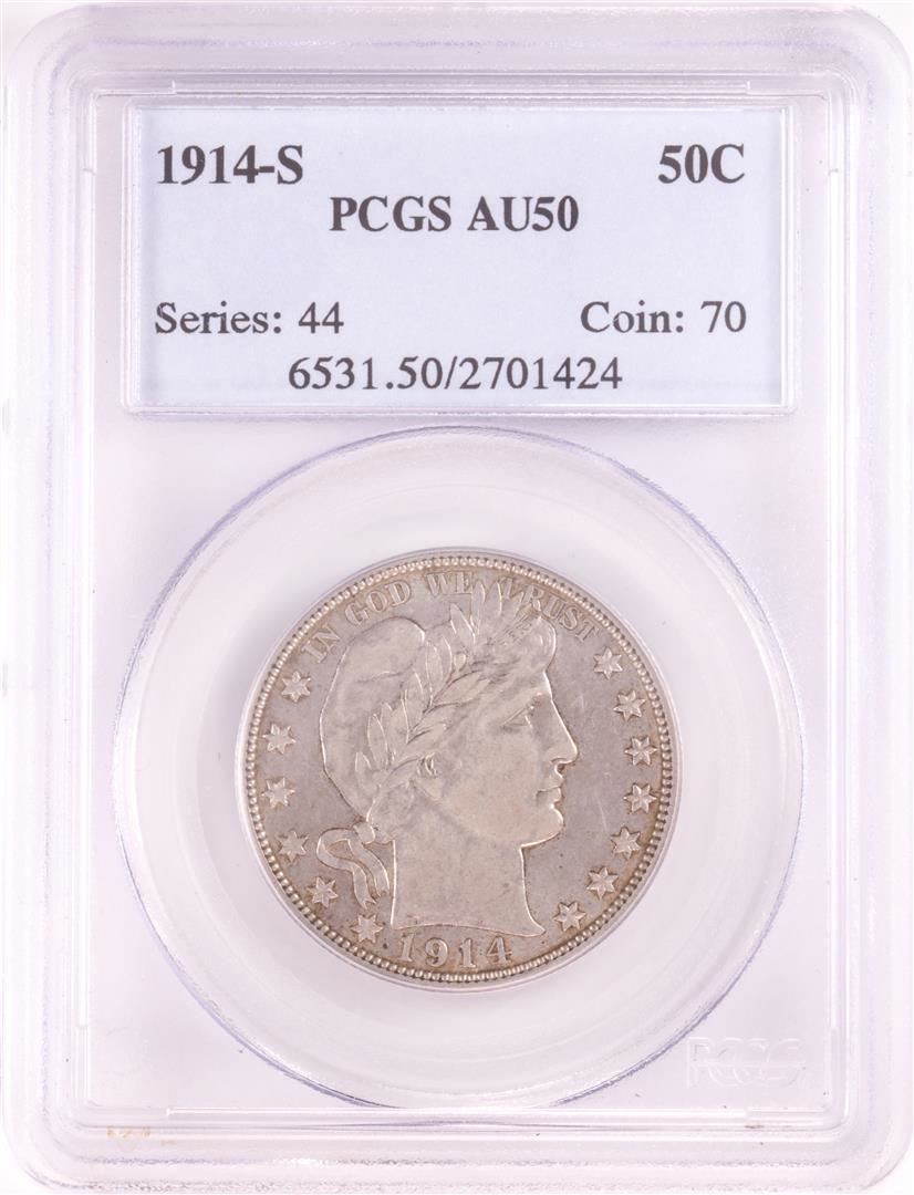 One 1914-S Barber Half Dollar Coin PCGS AU50. PCGS Graded.
