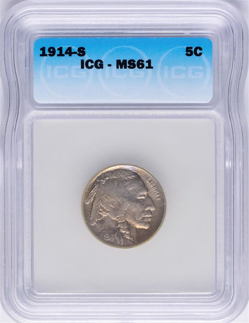 One 1914-S Buffalo Nickel Coin ICG MS61. ICG Certified.