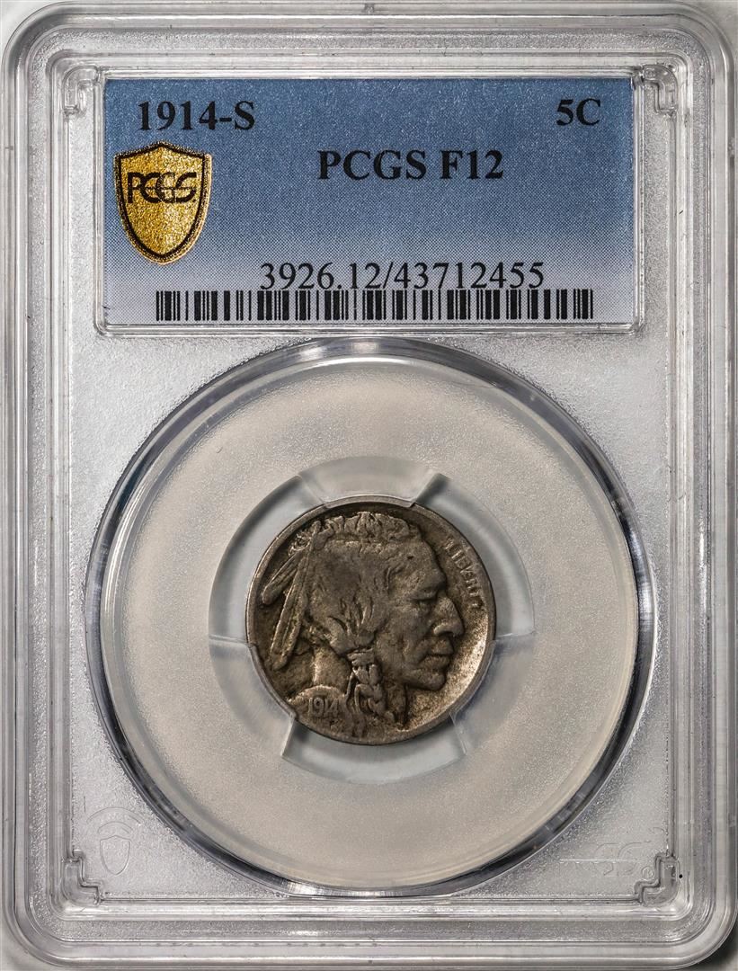 One 1914-S Buffalo Nickel Coin PCGS F12. PCGS Graded.