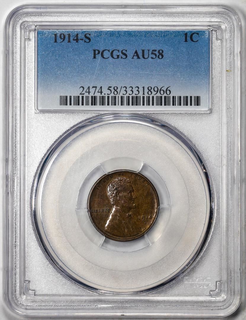 One 1914-S Lincoln Wheat Cent Coin PCGS AU58. PCGS Graded.