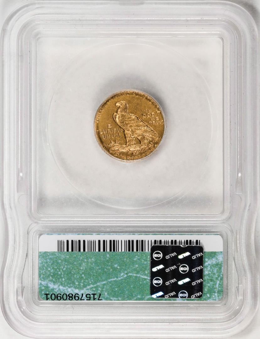 One 1915 $2 1/2 Indian Head Quarter Eagle Gold Coin ICG MS61. ICG Certified.