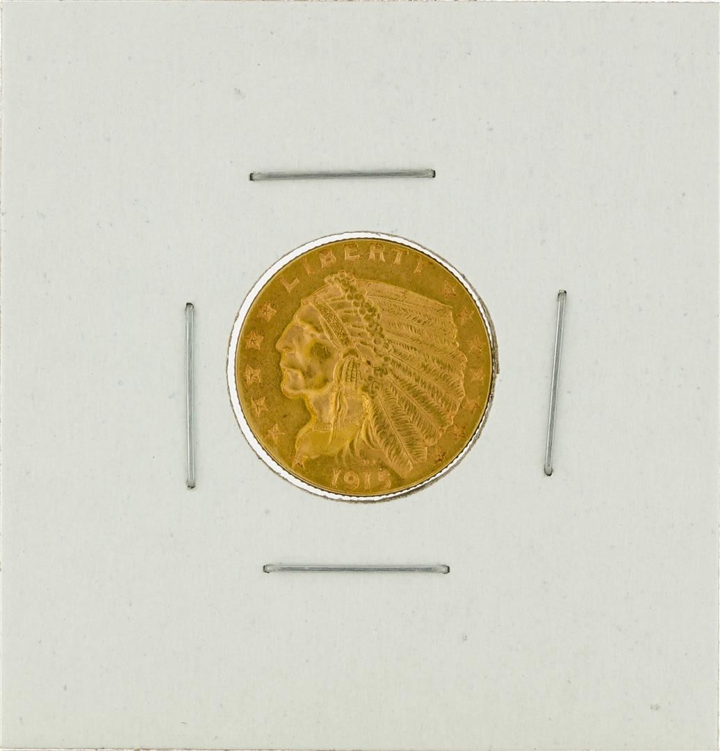 One 1915 $2 1/2 Indian Head Quarter Eagle Gold Coin.