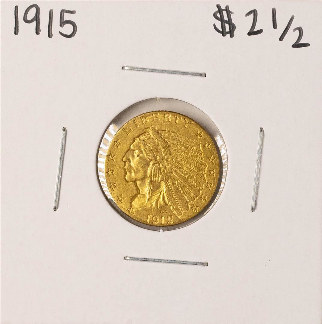 One 1915 $2 1/2 Indian Head Quarter Eagle Gold Coin.
