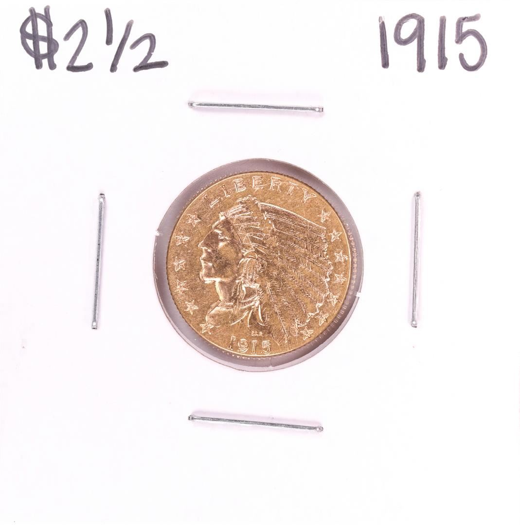 One 1915 $2 1/2 Indian Head Quarter Eagle Gold Coin.