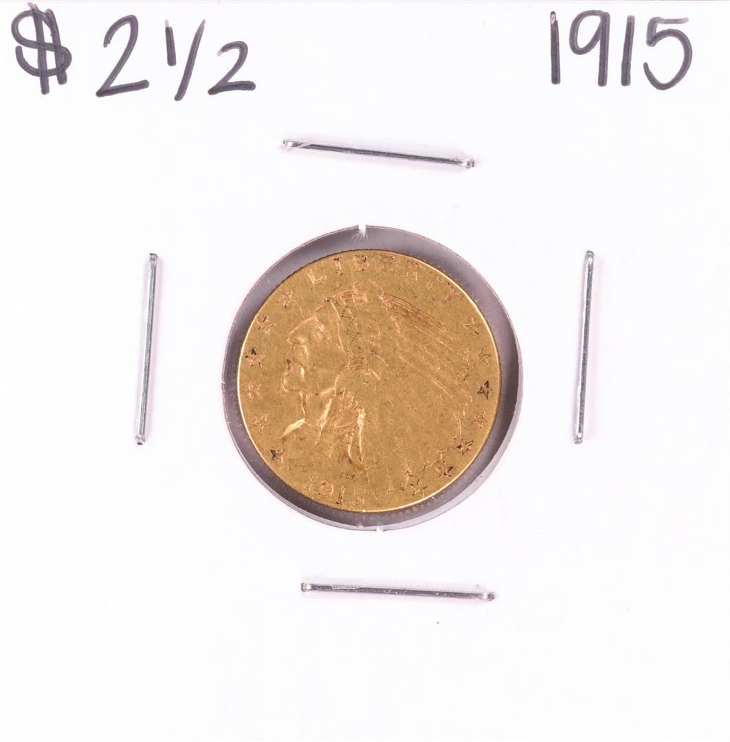 One 1915 $2 1/2 Indian Head Quarter Eagle Gold Coin.
