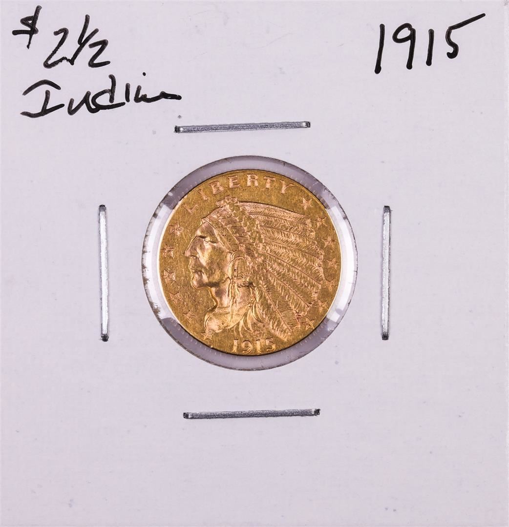 One 1915 $2 1/2 Indian Head Quarter Eagle Gold Coin.