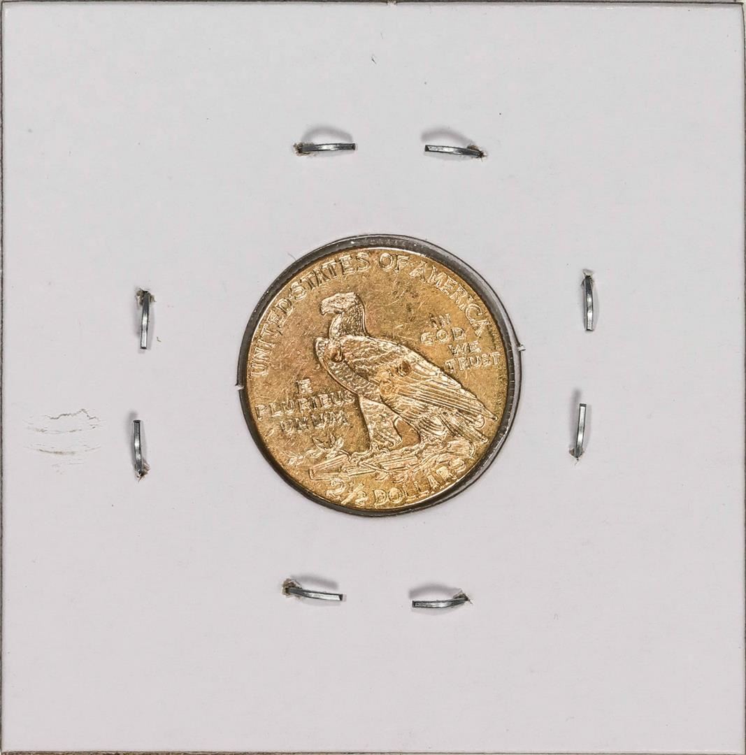 One 1915 $2 1/2 Indian Head Quarter Eagle Gold Coin, please note there is some damage to the coin as shown in the pictures.