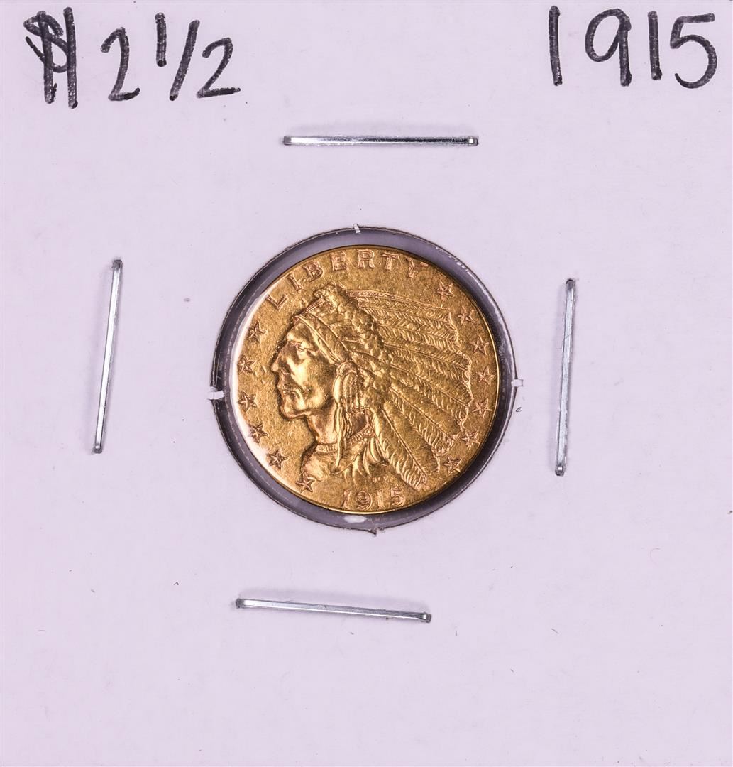 One 1915 $2 1/2 Indian Head Quarter Eagle Gold Coin.