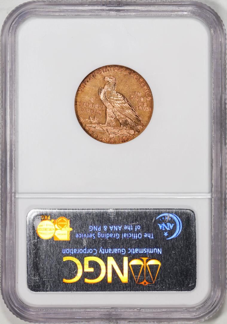 One 1915 $5 Indian Head Half Eagle Gold Coin NGC AU58. NGC Certified.