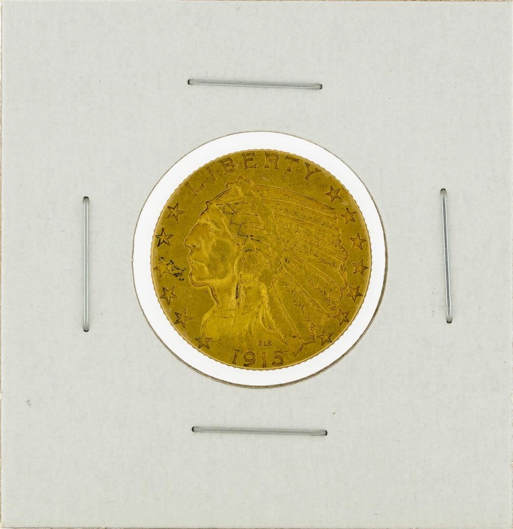 One 1915 $5 Indian Head Half Eagle Gold Coin.