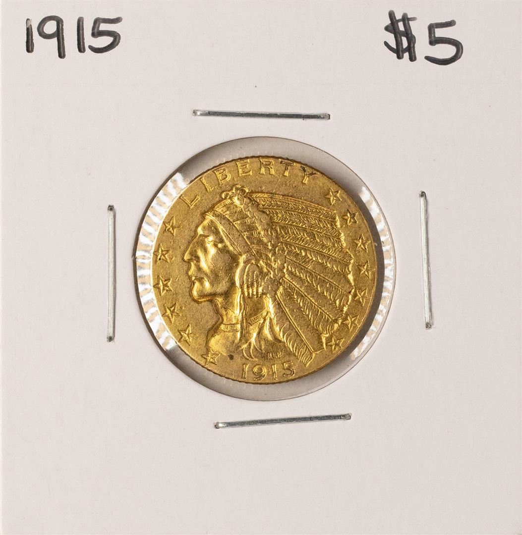 One 1915 $5 Indian Head Half Eagle Gold Coin.