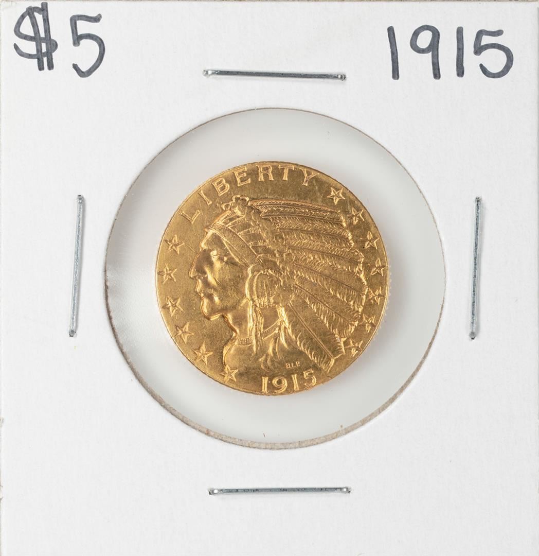 One 1915 $5 Indian Head Half Eagle Gold Coin.