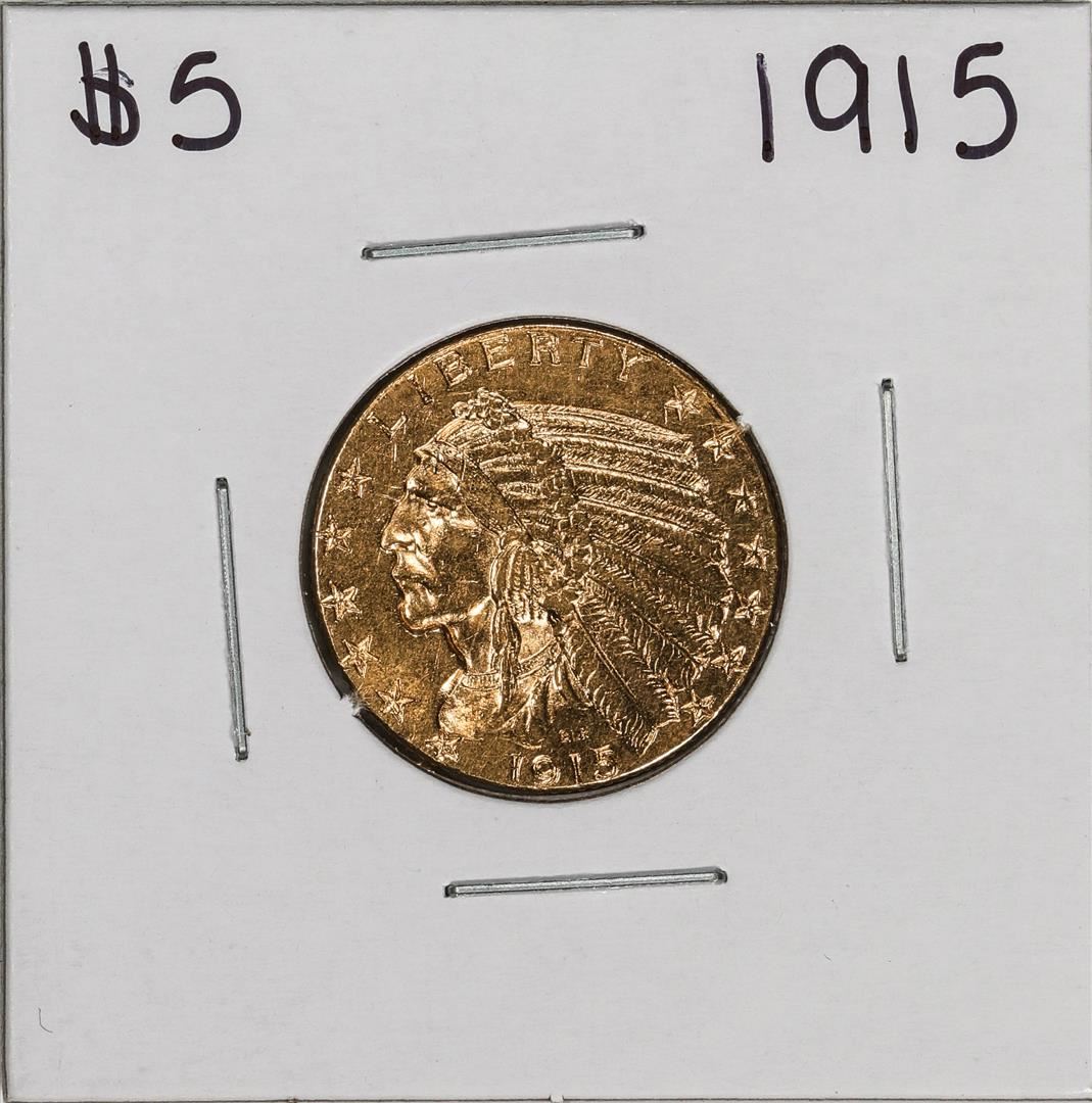 One 1915 $5 Indian Head Half Eagle Gold Coin.