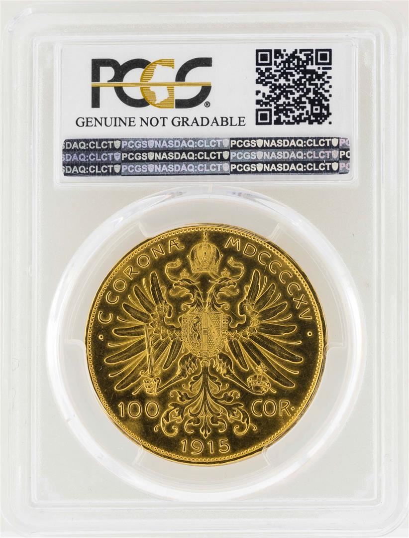One 1915 Austria 100 Corona Gold Coin KM-2819 Restrike PCGS Genuine Unc Details. PCGS Graded.