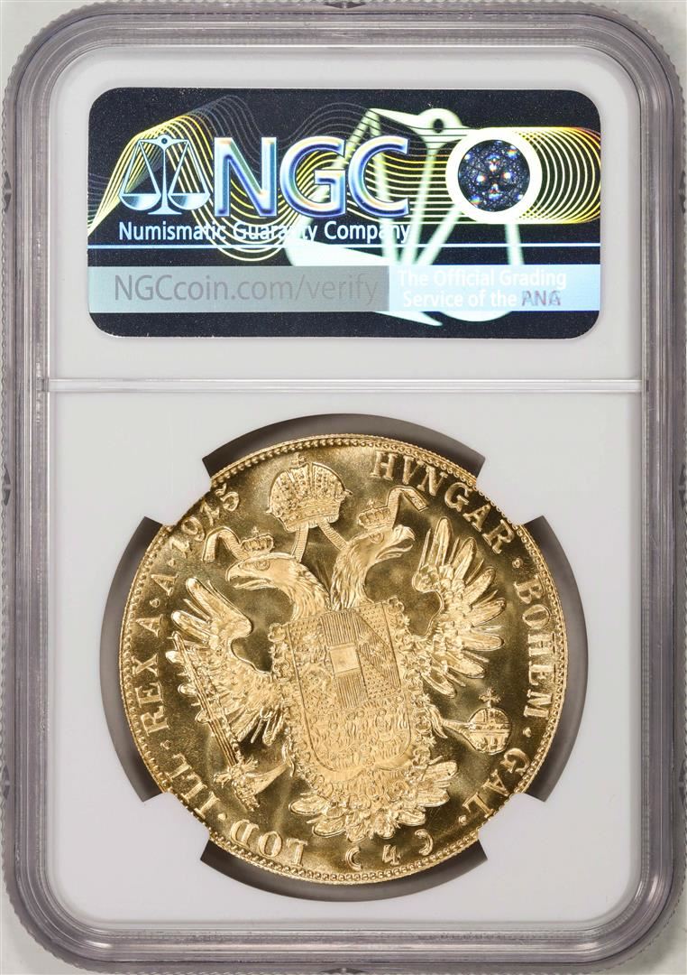 One 1915 Austria 4 Ducats Restrike Gold Coin NGC MS66 . NGC Certified.