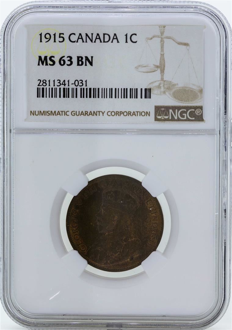 One 1915 Canada Large Cent Coin NGC MS63BN. NGC Certified.