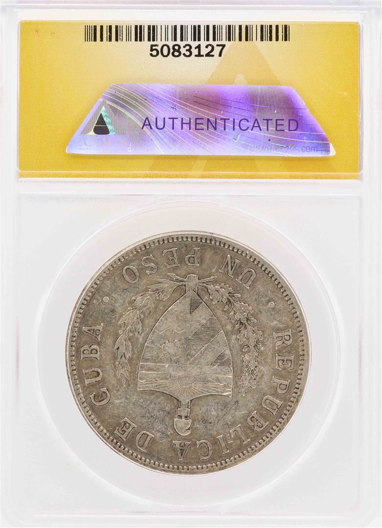 One 1915 Cuba High Relief Peso Coin ANACS VF30. ANACS Certified.