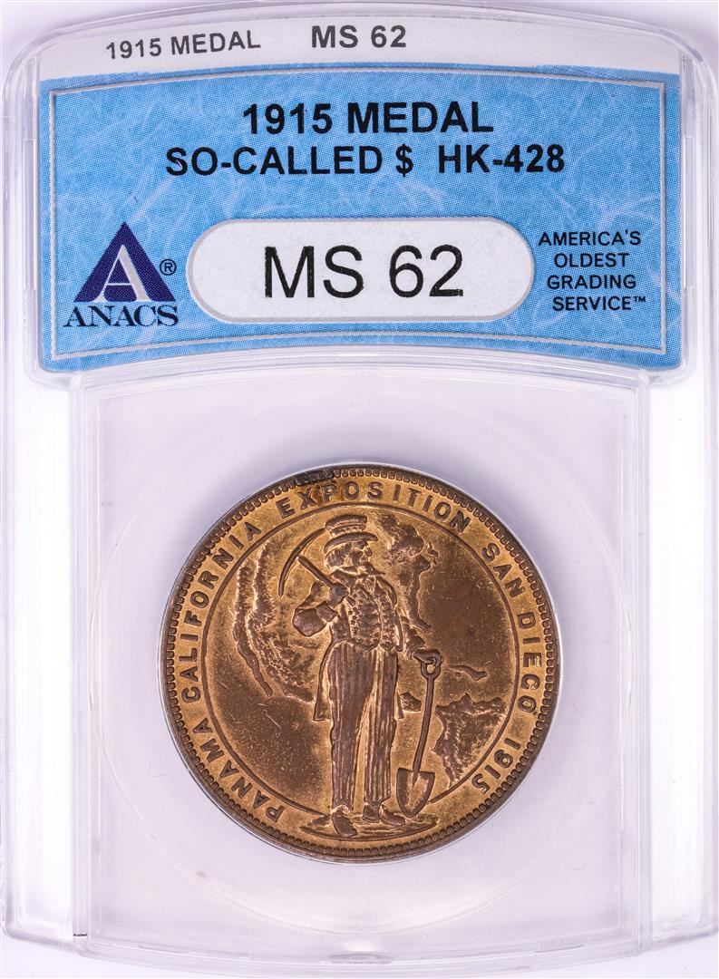 One 1915 Panama California Exposition So-Called Dollar Medal ANACS MS62 HK-428. ANACS Certified.
