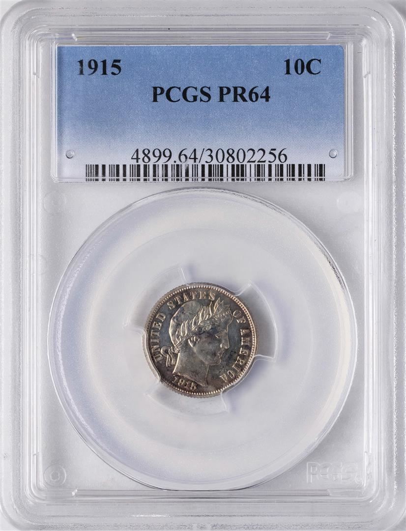 One 1915 Proof Barber Dime Coin PCGS PR64. PCGS Graded.