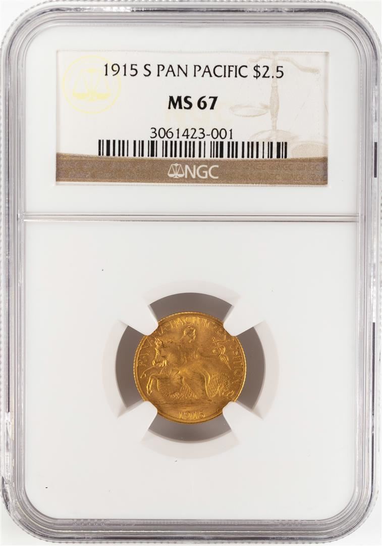 One 1915-S $2 1/2 Pan Pacific Quarter Eagle Gold Coin NGC MS67. NGC Certified.