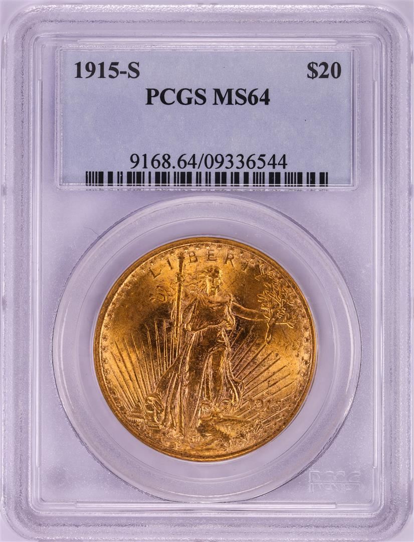 One 1915-S $20 St. Gaudens Double Eagle Gold Coin PCGS MS64. PCGS Graded.