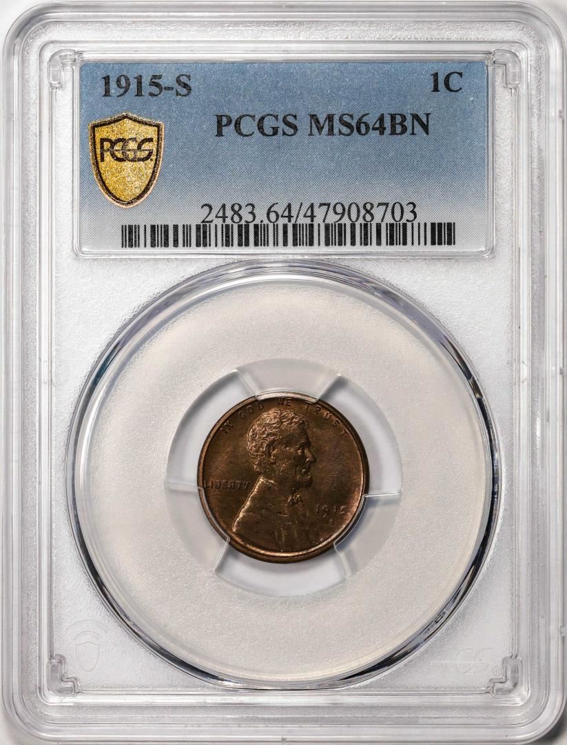 One 1915-S Lincoln Wheat Cent Coin PCGS MS64BN. PCGS Graded.