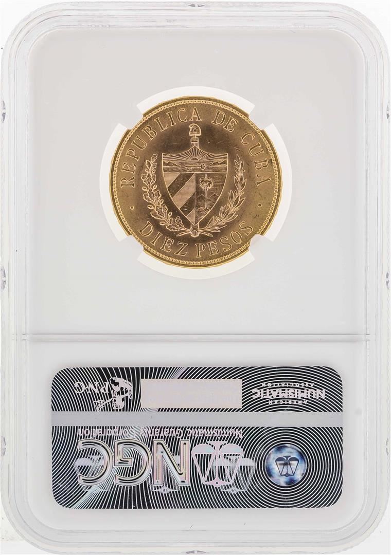 One 1916 Cuba 10 Pesos Gold Coin NGC MS60. NGC Certified.