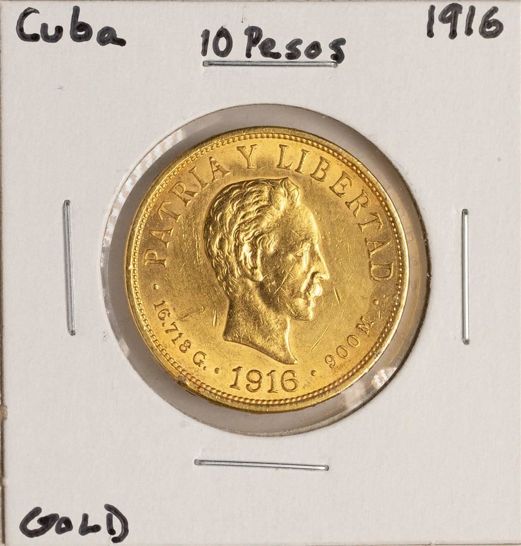 One 1916 Cuba 10 Pesos Gold Coin.