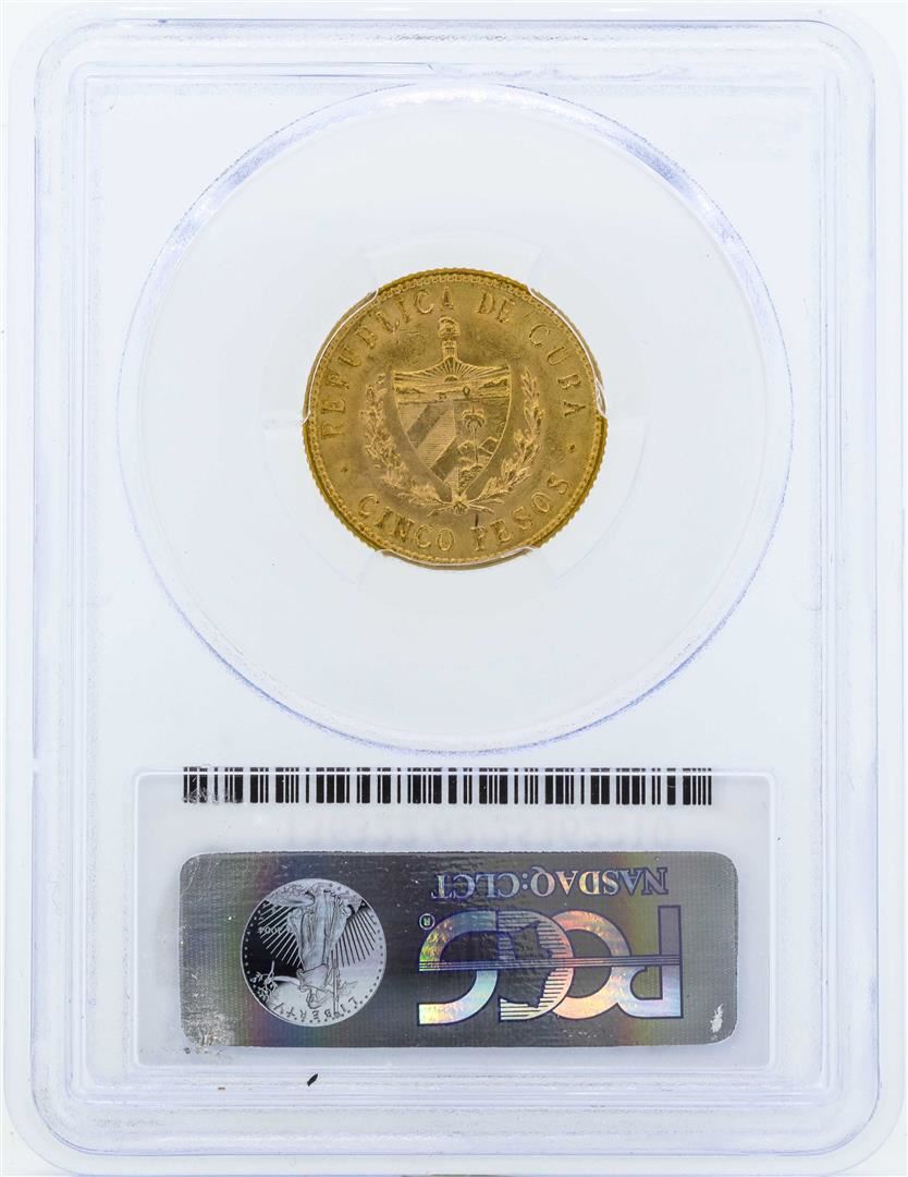 One 1916 Cuba 5 Pesos Gold Coin PCGS MS62. PCGS Graded.