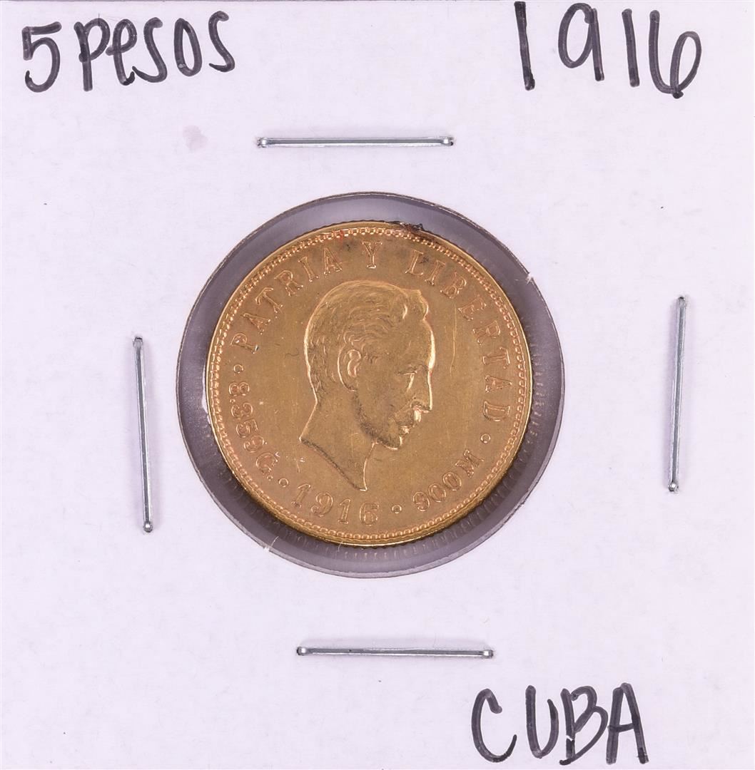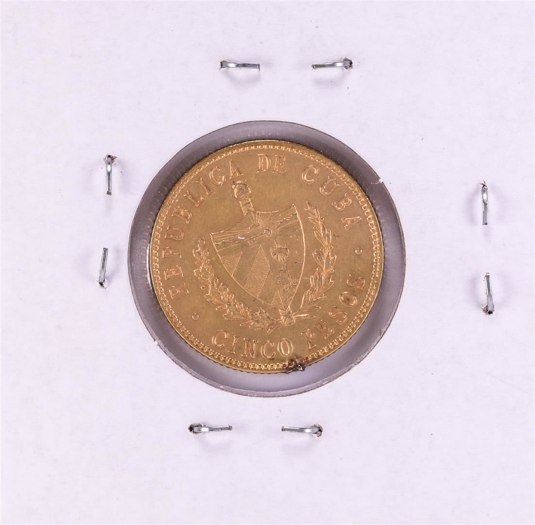 One 1916 Cuba 5 Pesos Gold Coin, there is what appears to be a solder mark at the rim of the coin.