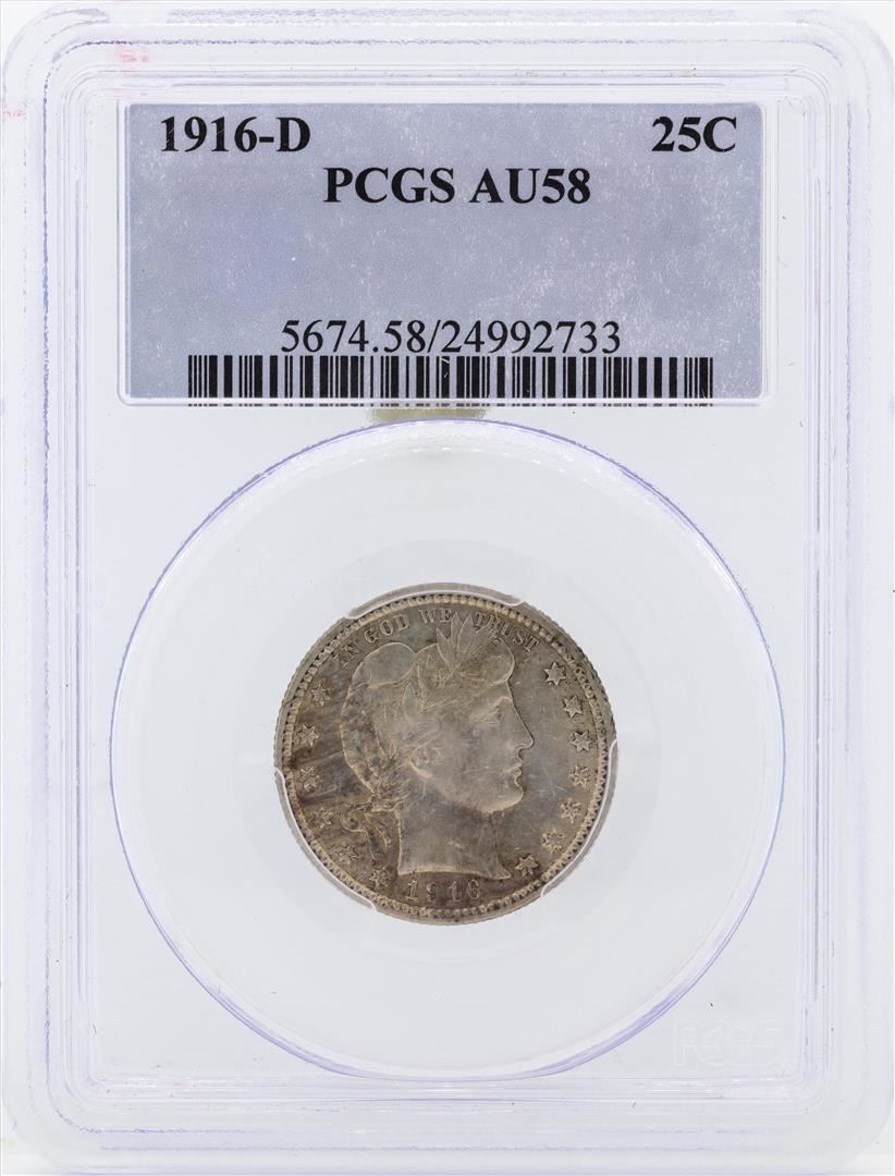 One 1916-D Barber Silver Quarter Coin PCGS AU58. PCGS Graded.