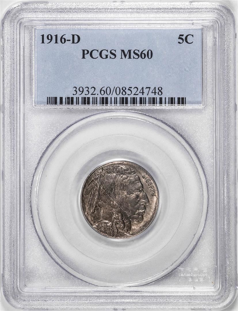 One 1916-D Buffalo Nickel Coin PCGS MS60. PCGS Graded.