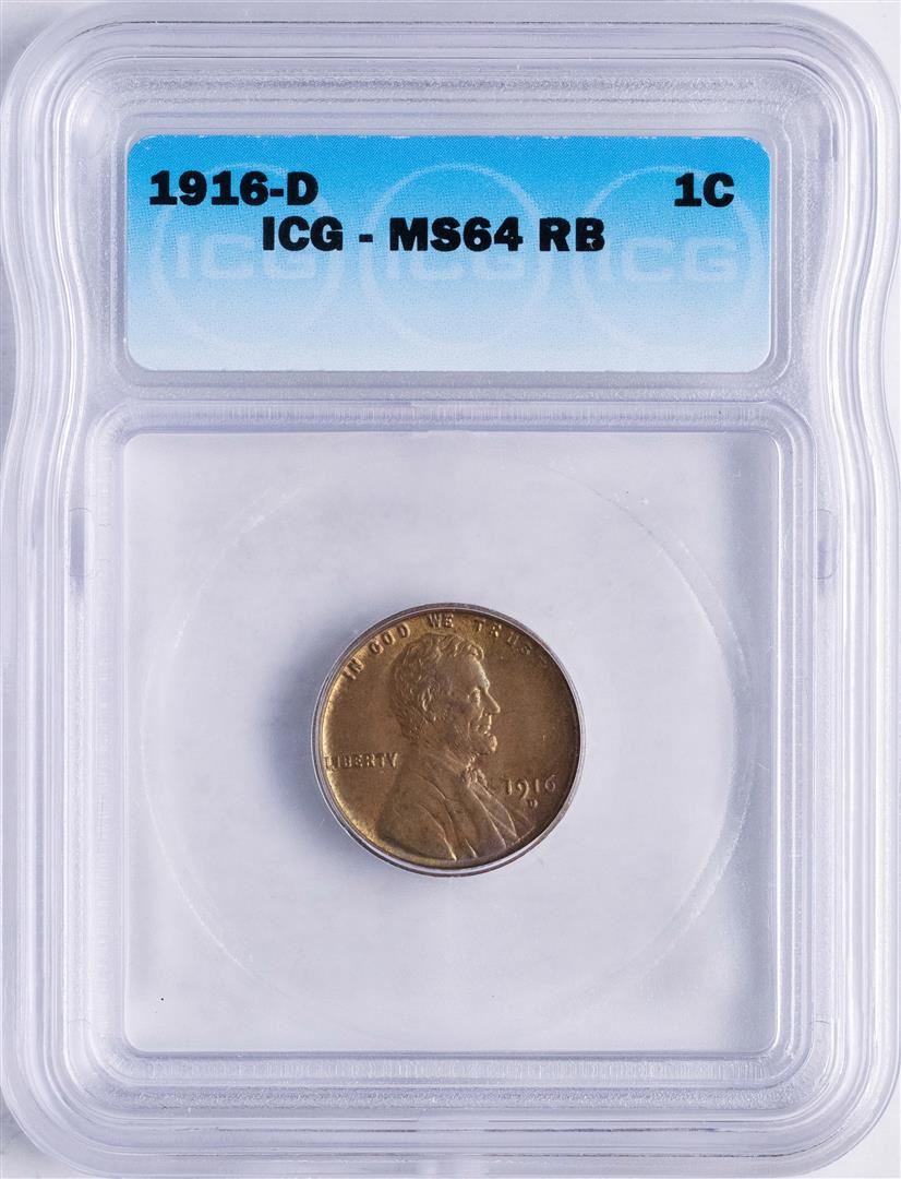 One 1916-D Lincoln Wheat Cent Coin ICG MS64RB. ICG Certified.