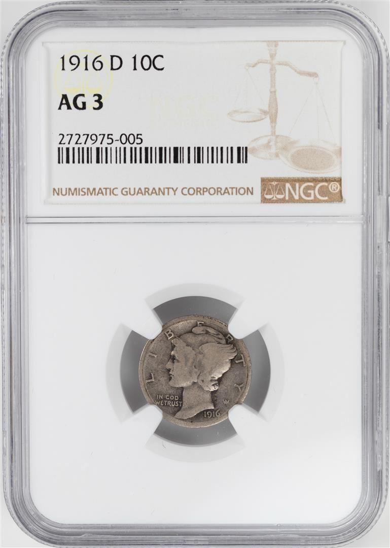 One 1916-D Mercury Dime Coin NGC AG3. NGC Certified.