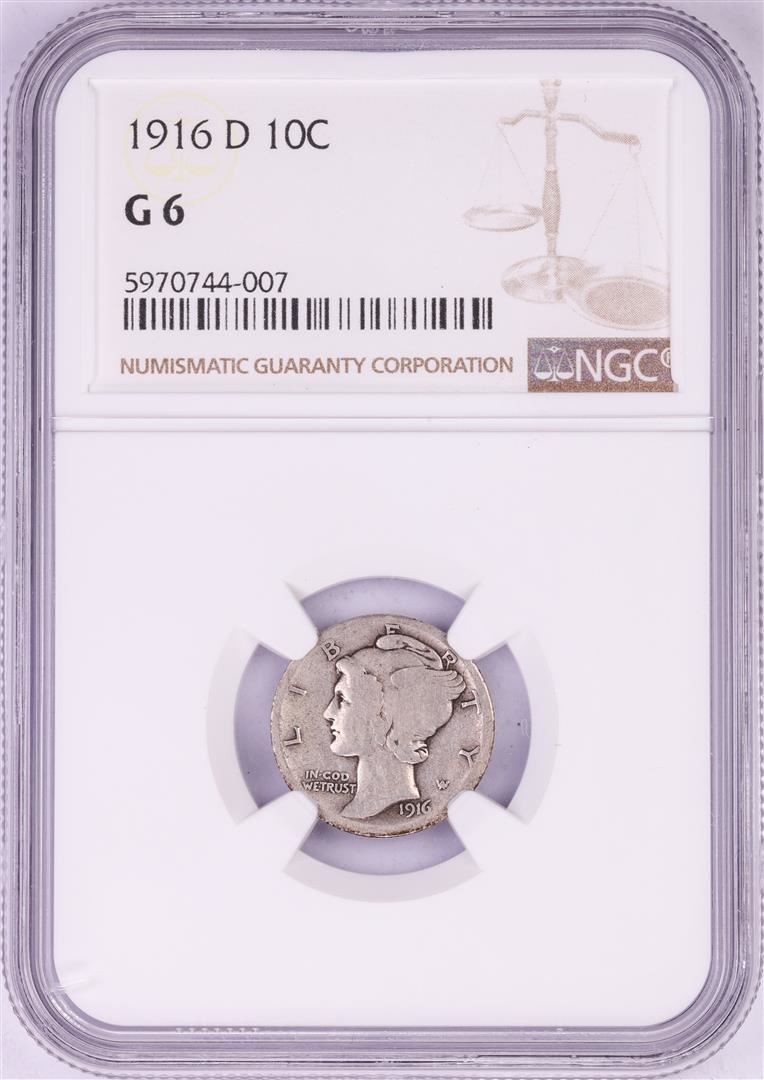 One 1916-D Mercury Dime Coin NGC G6. NGC Certified.