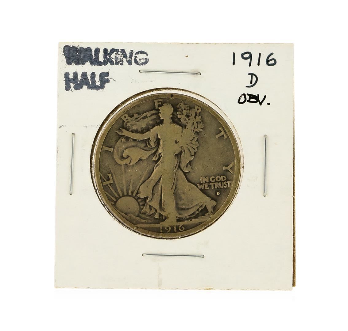 One 1916-D Obverse Walking Liberty Half Dollar.