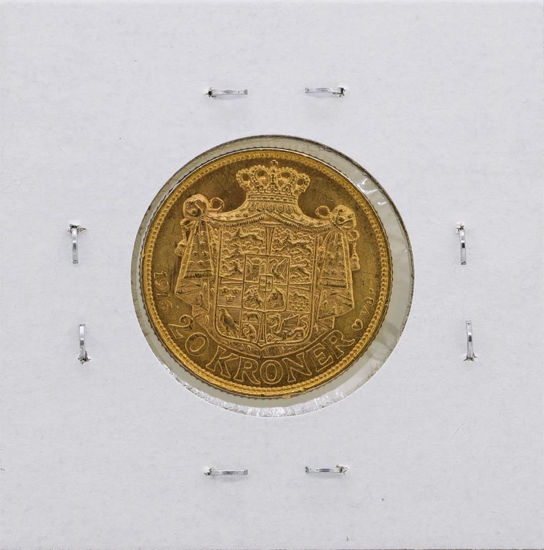 One 1916 Denmark Christian IX 20 Kroner Gold Coin.