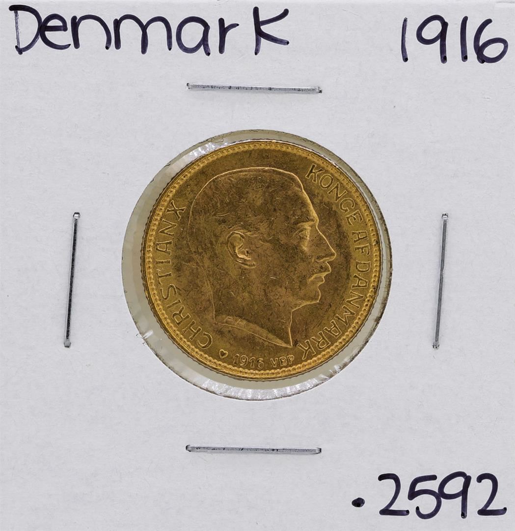 One 1916 Denmark Christian IX 20 Kroner Gold Coin.