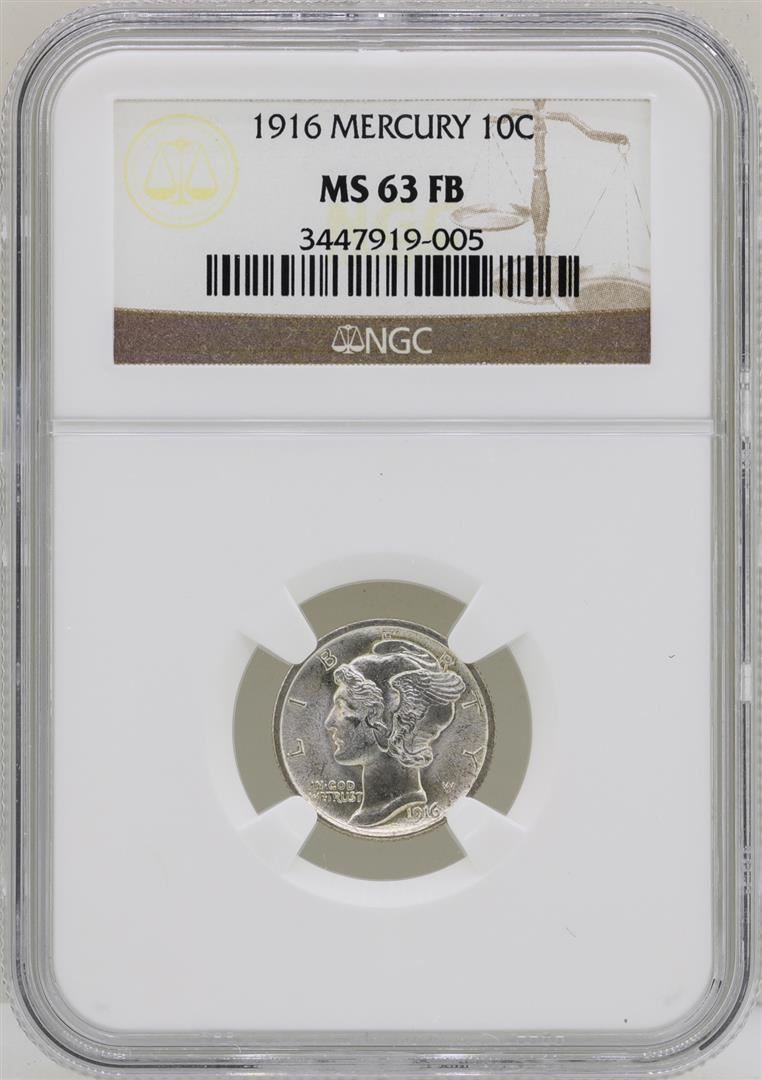 One 1916 Mercury Dime Coin NGC MS63FB. NGC Certified.