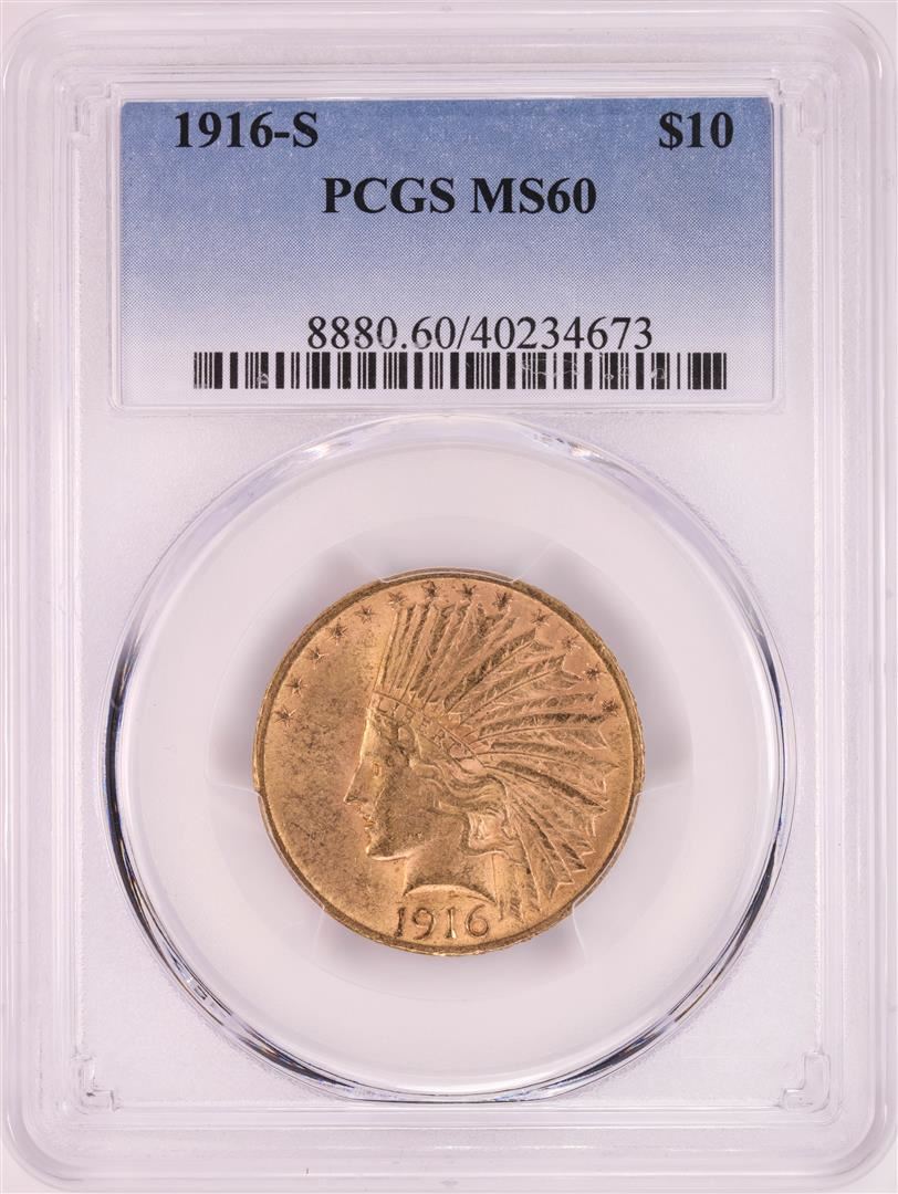 One 1916-S $10 Indian Head Eagle Gold Coin PCGS MS60. PCGS Graded.