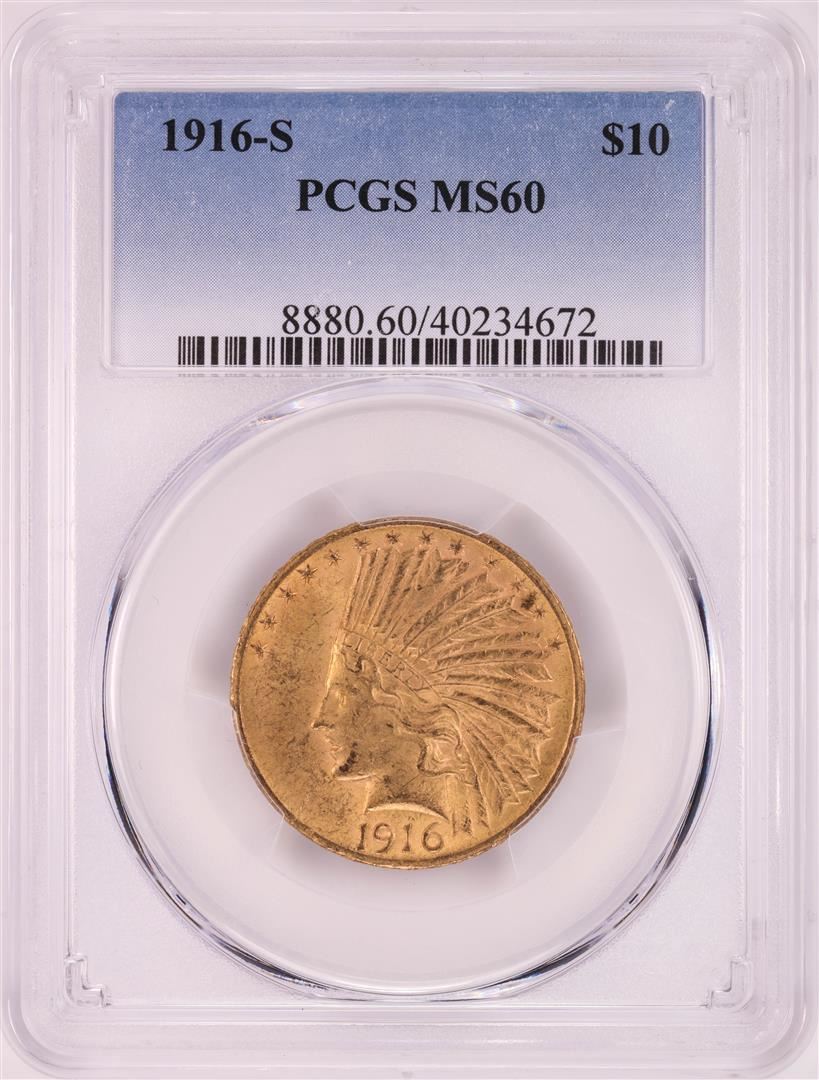 One 1916-S $10 Indian Head Eagle Gold Coin PCGS MS60. PCGS Graded.