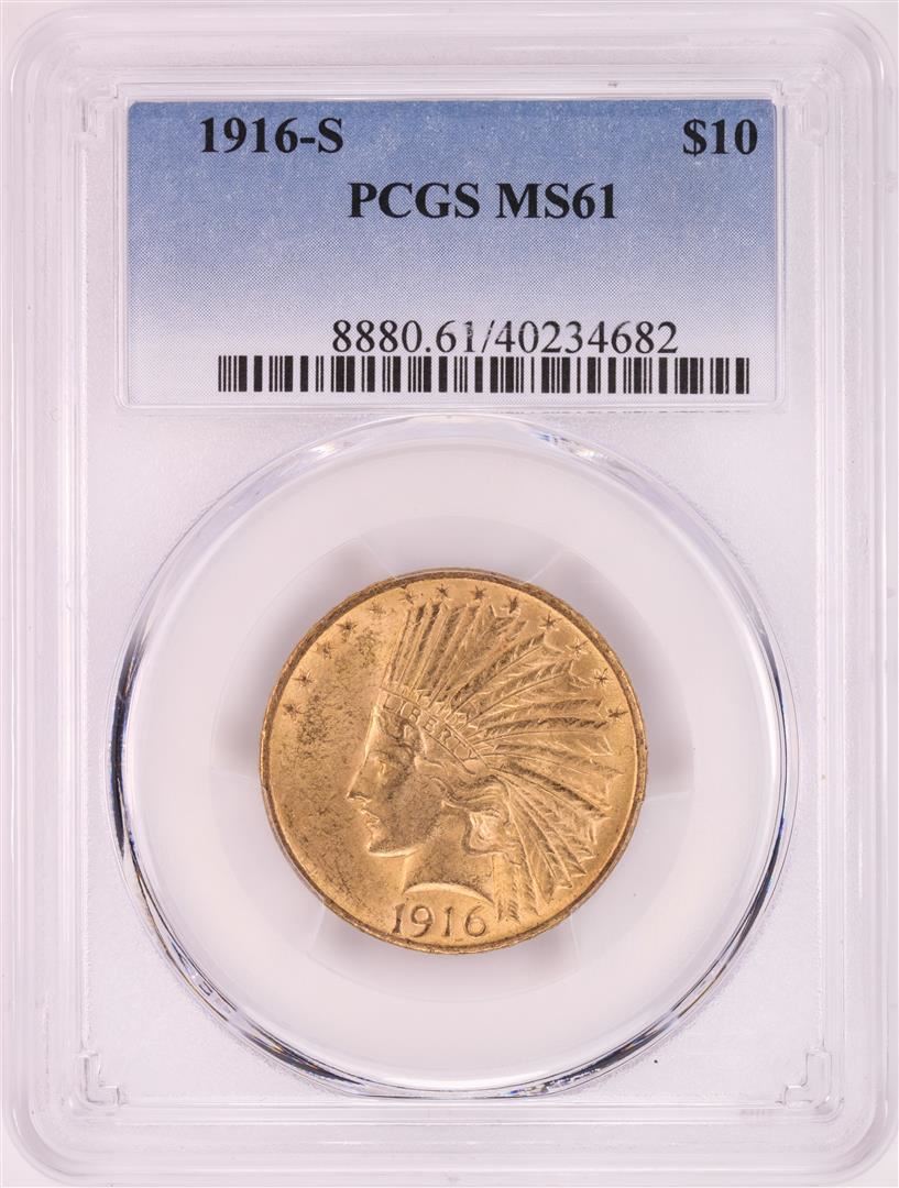 One 1916-S $10 Indian Head Eagle Gold Coin PCGS MS61. PCGS Graded.