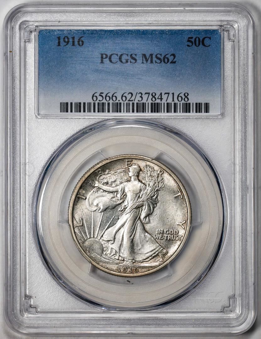 One 1916 Walking Liberty Half Dollar Coin PCGS MS62. PCGS Graded.