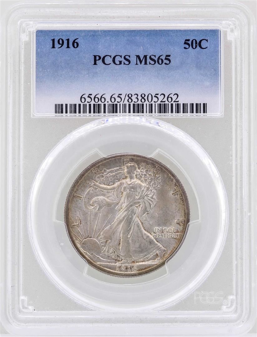 One 1916 Walking Liberty Half Dollar Coin PCGS MS65. PCGS Graded.