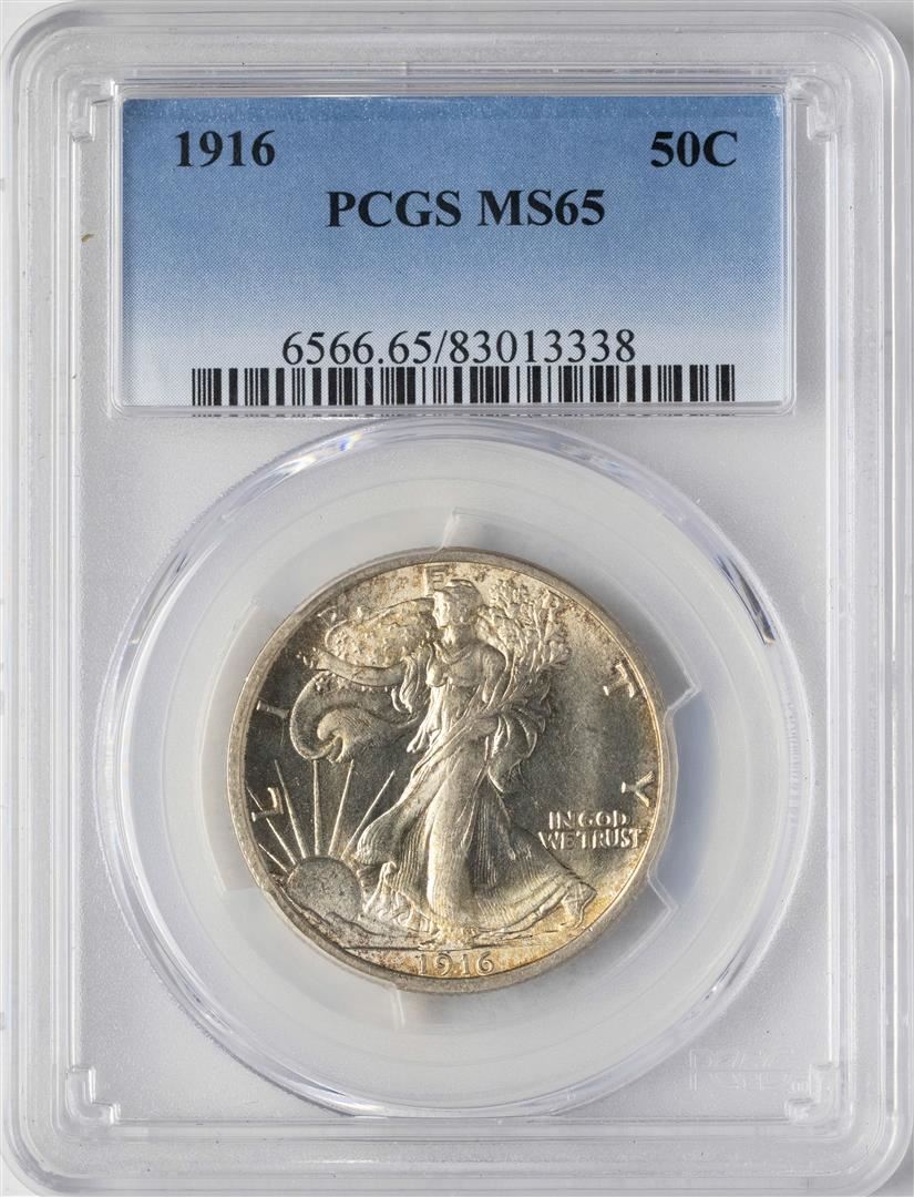 One 1916 Walking Liberty Half Dollar Coin PCGS MS65. PCGS Graded.