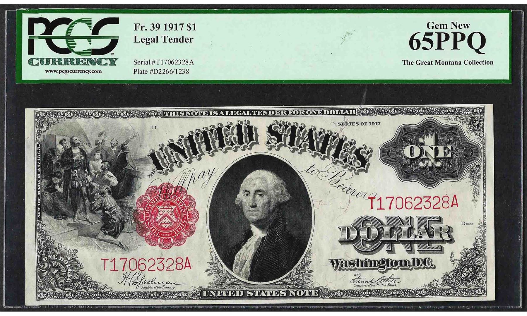 One 1917 $1 Legal Tender Note Fr.37 PCGS Gem New 65PPQ. PCGS Graded.