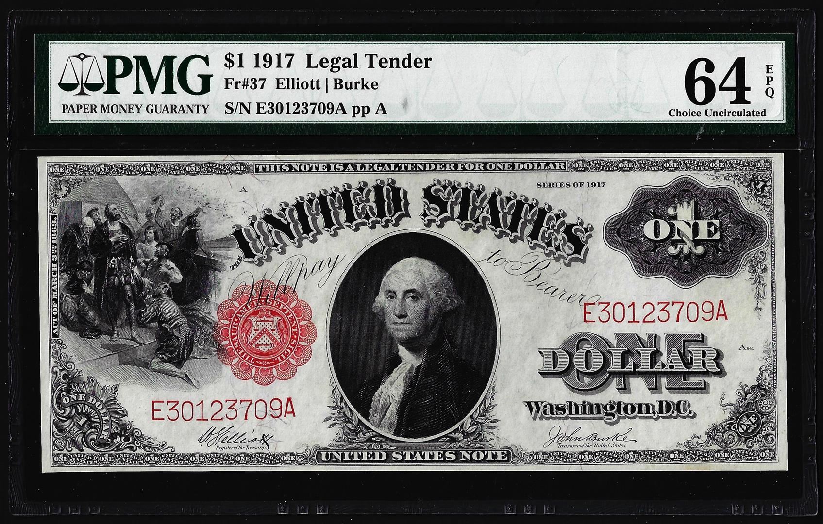 1917 $1 Legal Tender Note Fr.37 PMG Choice Uncirculated 64EPQ
