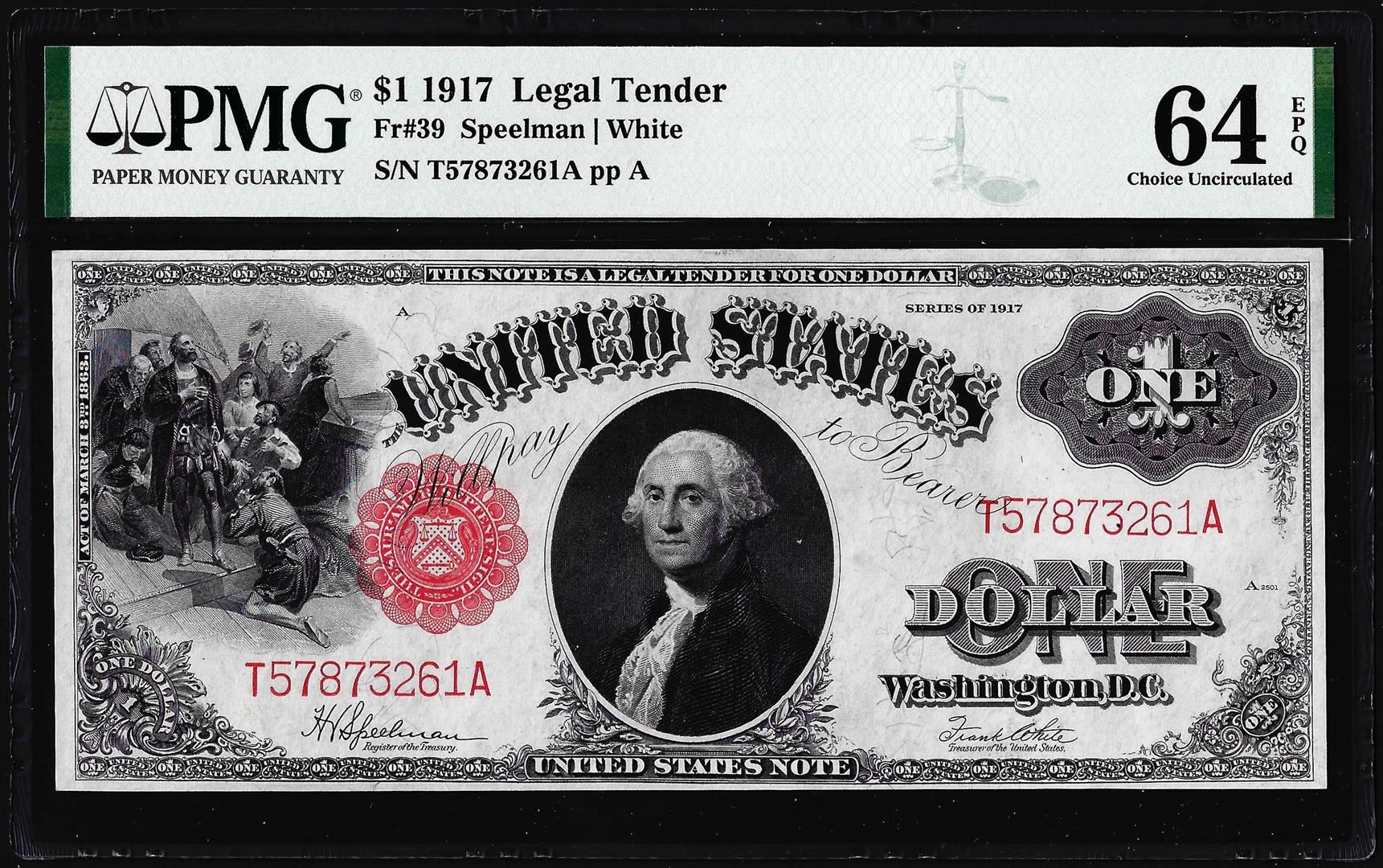 One 1917 $1 Legal Tender Note Fr.39 PMG Choice Uncirculated 64EPQ. PMG Certified.